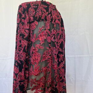 Rich burnout design, delicate ruffles at the shoulders & neckline,
