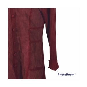 J. Jill Rustic Red Crochet Wool & Suede Patchwork Long Cardigan Sweater Jacket
