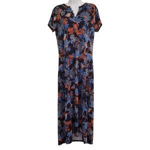 J Jill S Stretch Knit Blue Red Floral Maxi Dress Modest Summer