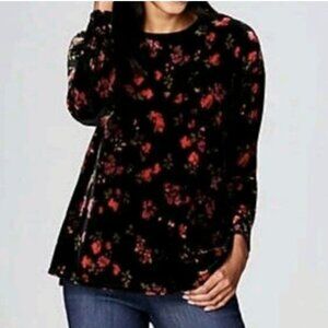 J. Jill SZ 2XL Black Floral Velvet Top Romantic Boho Artsy Whimsigoth Comfy