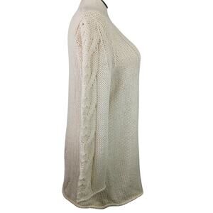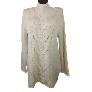 J. Jill SZ L Wool Alpaca Blend V Neck Cable Knit Tunic Length Fisherman Sweater
