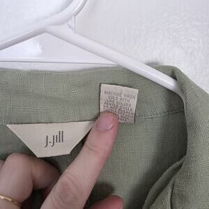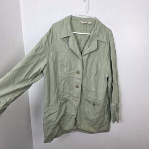 J. Jill Sage Green 100% Linen Lagenlook Casual Boho Button Up Jacket Size 1X