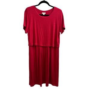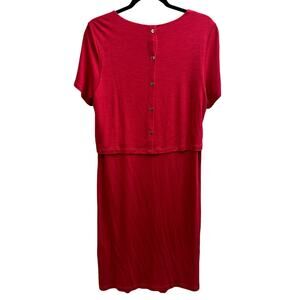 J Jill Sangria Red Knit Layered Button Down Back Dress Size M Flowy NEW