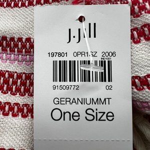 J Jill Scarf Red Blue Cream Striped Cotton Geranium Fringe 70" x 46" NEW