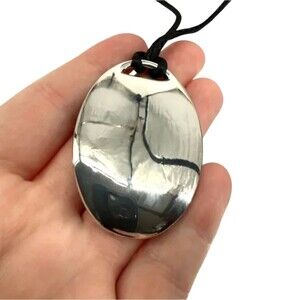 Stylish J. Jill silver-tone oval pendant necklace with sparkling crystal accents on an adjustable black cord. Modern, versatile, and easy to wear.