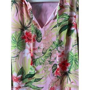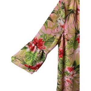 J Jill Seashell Paradise Tropical Floral Print Tunic Dress XS Pink Bell Sleeves
