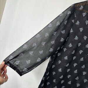 J Jill Sheer Mini Dress Women’s Mp Geometric Black 3/4 Sleeve V Neck Cover Up