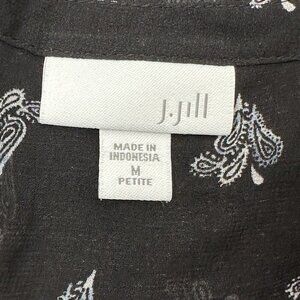 J Jill Sheer Mini Dress Sz Mp Geometric Black 3/4 Sleeve V Neck Cover Up Beachy