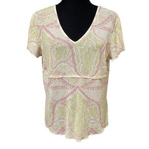 J Jill Sheer Paisley Boho Babydoll Top V-Neck Short Sleeve Y2K Style Large