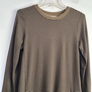 J Jill Shift Dress Knit Sweatshirt S Brown Stripe Pockets Long Sleeve Sweater
