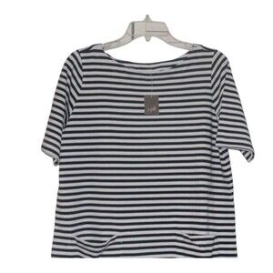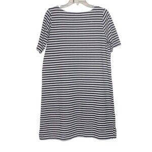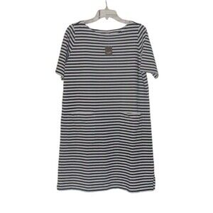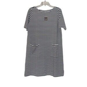 J. Jill navy blue and white striped shift dress. Boat neckline, short sleeves, pockets and a knee-length. 100% cotton knit. Machine washable. Size PM. NWT.