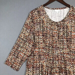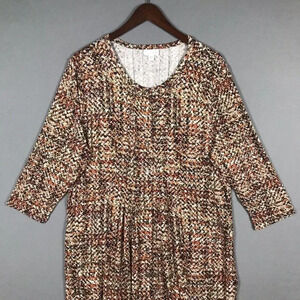 J Jill Shift Midi Dress Size Large Full Button Front 3/4 Sleeve Stretch Pockets