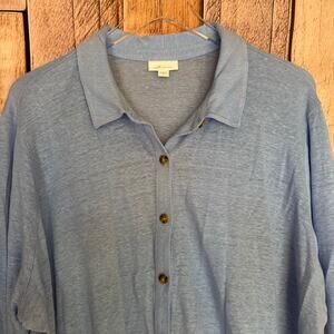 J. Jill Shirt Love Linen Button Down Relaxed Fit Coastal Blue Basic Plus Size 2X