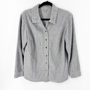 ✅ J. Jill Shirt SMALL Gray Corduroy Long Sleeve Button Up Floral Embroidery