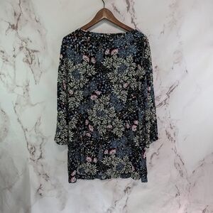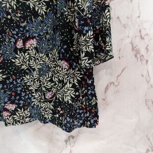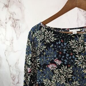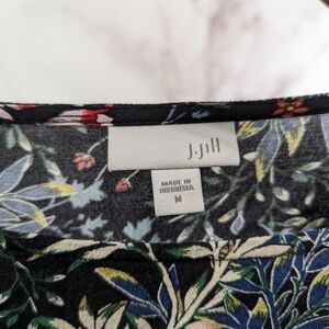 J Jill Shirt Women Medium Black Long Sleeve Top Floral Tunic Flutter Flare