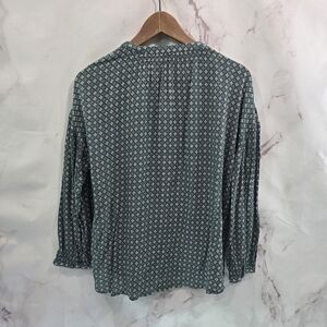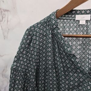 J Jill Shirt Women Medium Green White Geometric Button Up Blouse V Neck Popover