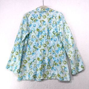 J Jill Shirt Women Small White Blue Green 100% Linen Abstract Watercolor Pattern