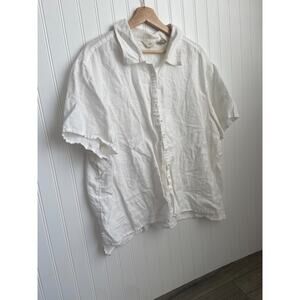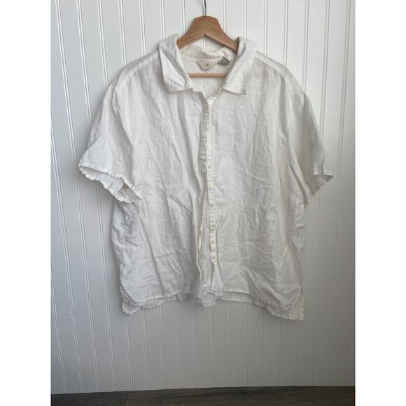 J. Jill Shirt Women's 3XL White 100% Linen Button Up Blouse, Short sleeve, light