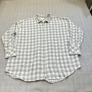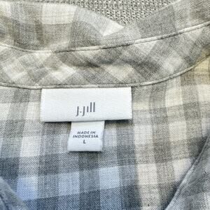 J Jill Shirt Womens Large Flannel Double Layered Check Grey Shacket Boho