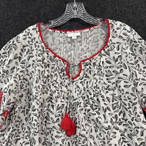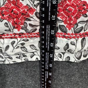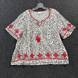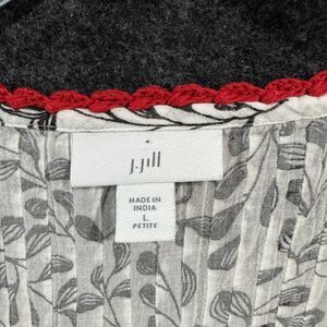 J. Jill Shirt Women's Large Petite White Black Red Embroidered Boho Peasant Top