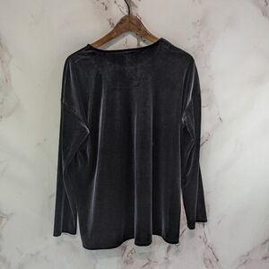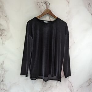 J Jill Shirt Womens Medium Black Velvet Long Sleeve Top Blouse Crewneck
