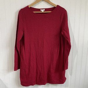 J. Jill Shirt Womens Medium Red Sweater Textured Boat Neck Long Sleeve Tunic