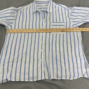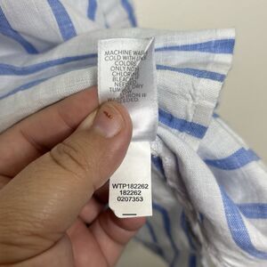 J Jill Shirt Womens Petite Medium Blue Striped Love Linen Button Long Sleeves