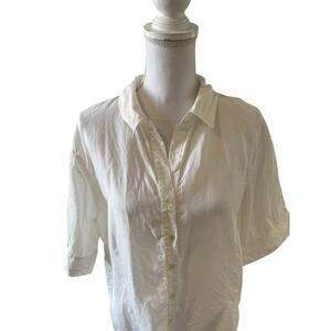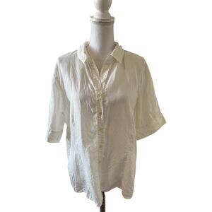 J Jill Short Sleeve Linen Button Down Shirt Creamy White XL