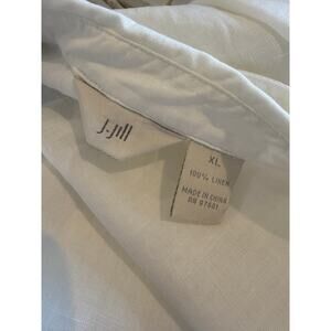 J Jill Short Sleeve Linen Button Down Shirt Creamy White, size XL. Good preowned condition with collar, gathered elastic at back, button front. 100% Linen