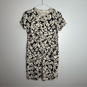 J. Jill Side Button Floral Knit Short Sleeve Dress, Size S, Black Cream Floral