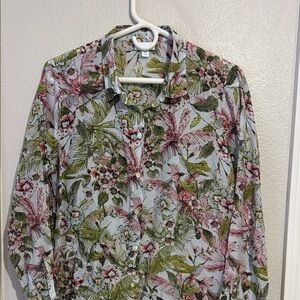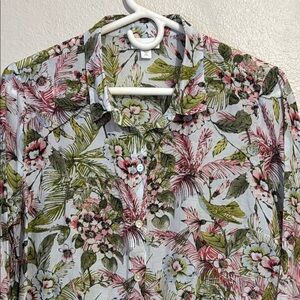 J Jill Silk Blend Floral Hummingbird Pattern LS Button Up Tunic