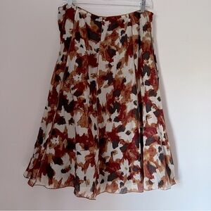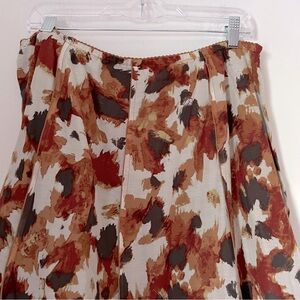 J. Jill Silk Cotton Pattern Lightweight Midi A-Line Skirt Earthy Colorway Fall