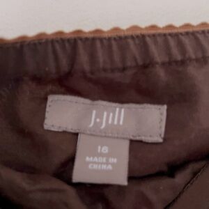 This J. Jill skirt features a beautiful blend of brown and cream tones in a classic A-line silhouette, perfect for casual or work settings. The midi length and flowing fabric offer a comfortable fit, while the subtle pleats add a touch of elegance. Ideal for versatile styling, this skirt is a must-have addition to your wardrobe.