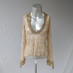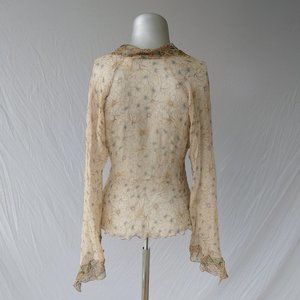 really lovely! good preowned condition. 100% silk. very light, flowy and sheer.