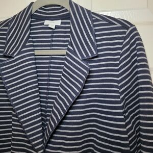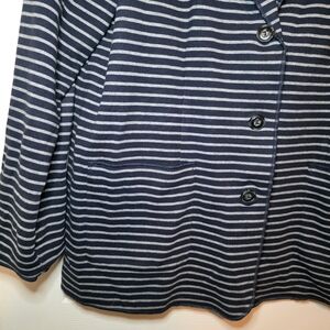 J. Jill Single Breasted Navy Striped Cotton Blend Blazer Jacket Size L