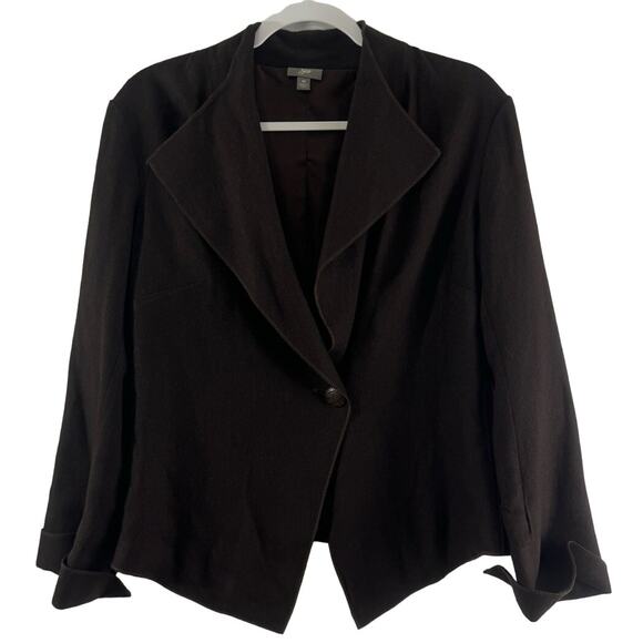 J. Jill Size 10 Dark Brown Blazer Jacket One button front V Neck Lined Womens