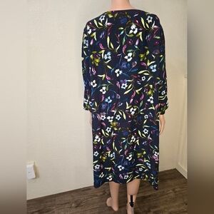 J. Jill Size 2x Watercolor Floral Midi Dress Blue Purple 3/4 Sleeves Pockets
