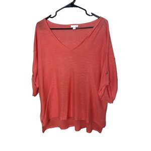 J. Jill Size L Linen Short Sleeve T Tee Shirt Top Blouse V Neck Orange
