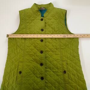 J Jill Size L Petite Green Quilted Vest Sleeveless Button Up Lightweight