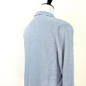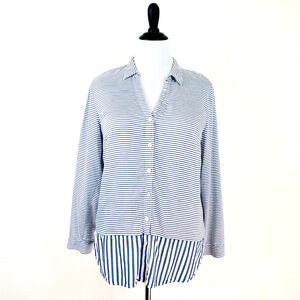 J Jill Size L Woven Rayon Button Down Shirt Contrast Stripe Blue White