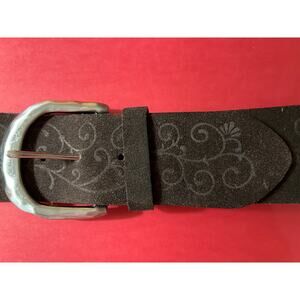 J. Jill Size Large Genuine Leather BELT 2.5" Wide Brown Embossed Scroll Flourish