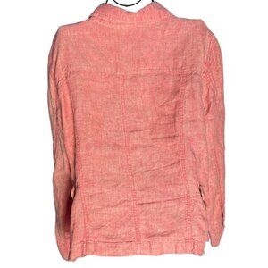 J Jill Size Large Petite Button Up Linen Shacket Jacket Pink 100% Linen Western