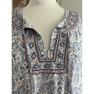 New without tags. J. Jill Size Large Blue Paisley Print Tunic Top With Tassels Beads & embroidery, machine wash, 100% viscose rayon.
