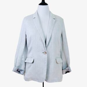 J Jill Size M Linen Lurex Single Button Lightweight Blazer Jacket Gray