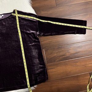 J. Jill Women's Size Medium Fig - Dark Purple Velvet Long Sleeve Top, 78% Rayon 22% Silk, No Stretch