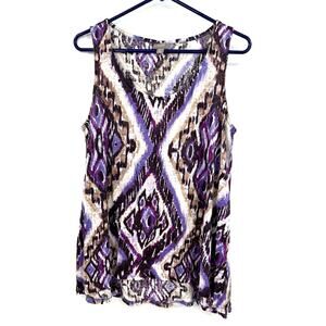 J Jill Size Medium Tank Top Purple Abstract Sleeveless 100% Linen Lightweight