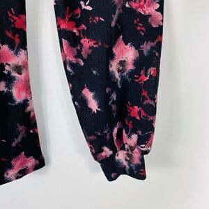 J. Jill Size Medium Watercolor Floral Stretchy Long Sleeve Blouse Top Black Pink