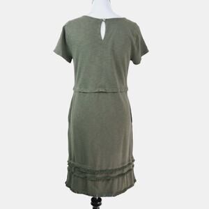 J Jill Size S Cotton Modal Slub Knit T-Shirt Dress Fringe Olive Green