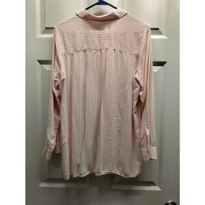 J. Jill Women's Size Small Petite Pink White Striped Button Up Rayon Long Roll Tab Sleeve Shirt