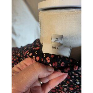 J Jill Size XL Black Red Floral Maxi Dress Full Button Jersey Tie Back